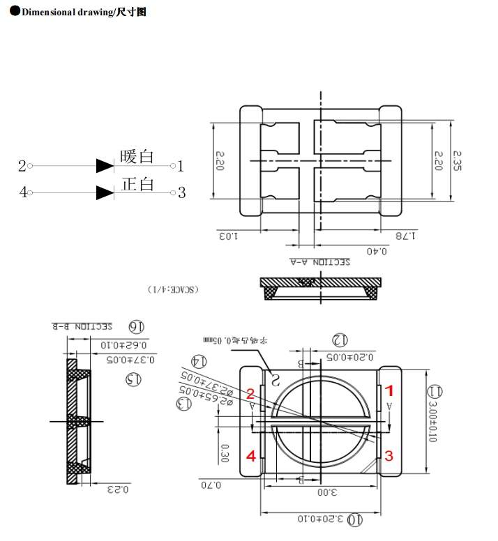 xk-3030W-0.5W | 暖白 | 0.5 | 0.15 | 3.0-3.4 | 2800-3200K | 50-70 | 120 | 70/80 |