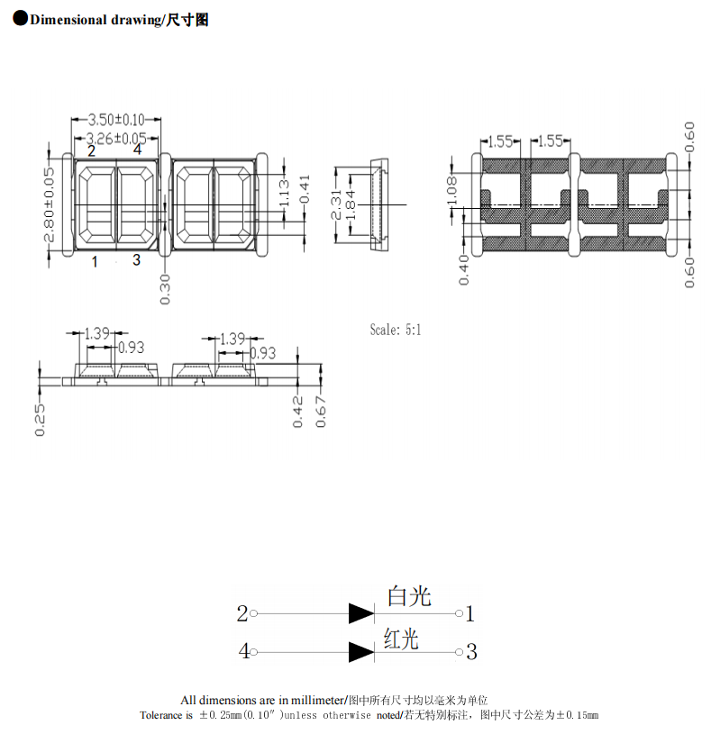 xk-2835W-0.5W | 白光 | 0.5 | 0.15 | 3.0-3.4 | 6000-7000K | 50-70 | 120 | 70/80 |