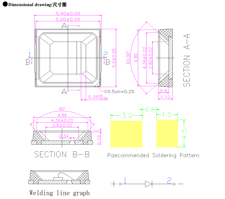xk-5054PL-1W | 紫色 | 1 | 0.35 | 3.0-3.4 | 395-405NM | 2-3LM | 120 | / |